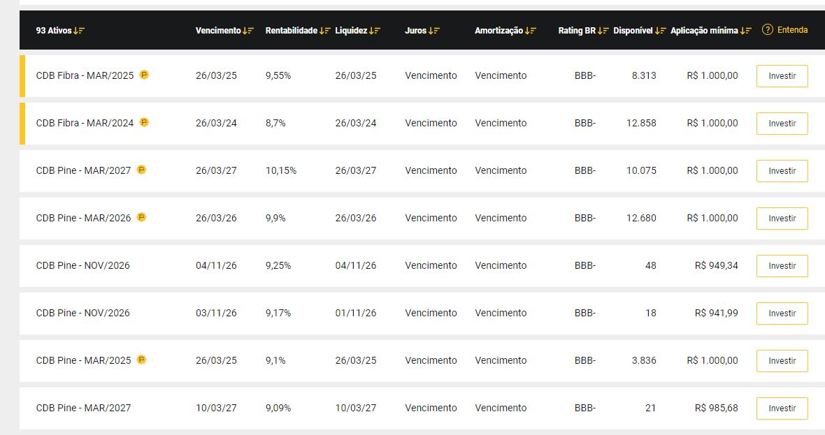 Bem como dá para ver pelo título, hoje estou aqui para falar de renda fixa! Sim aquela renda fixa que muita gente pensou que estivesse morta, afinal o Brasil com uma taxa de juros de 3.75% ao ano não pode estar gerando oportunidades nesse segmento, correto? Errado! Veja na imagem abaixo alguns CDBs disponíveis neste exato momento na minha corretora: